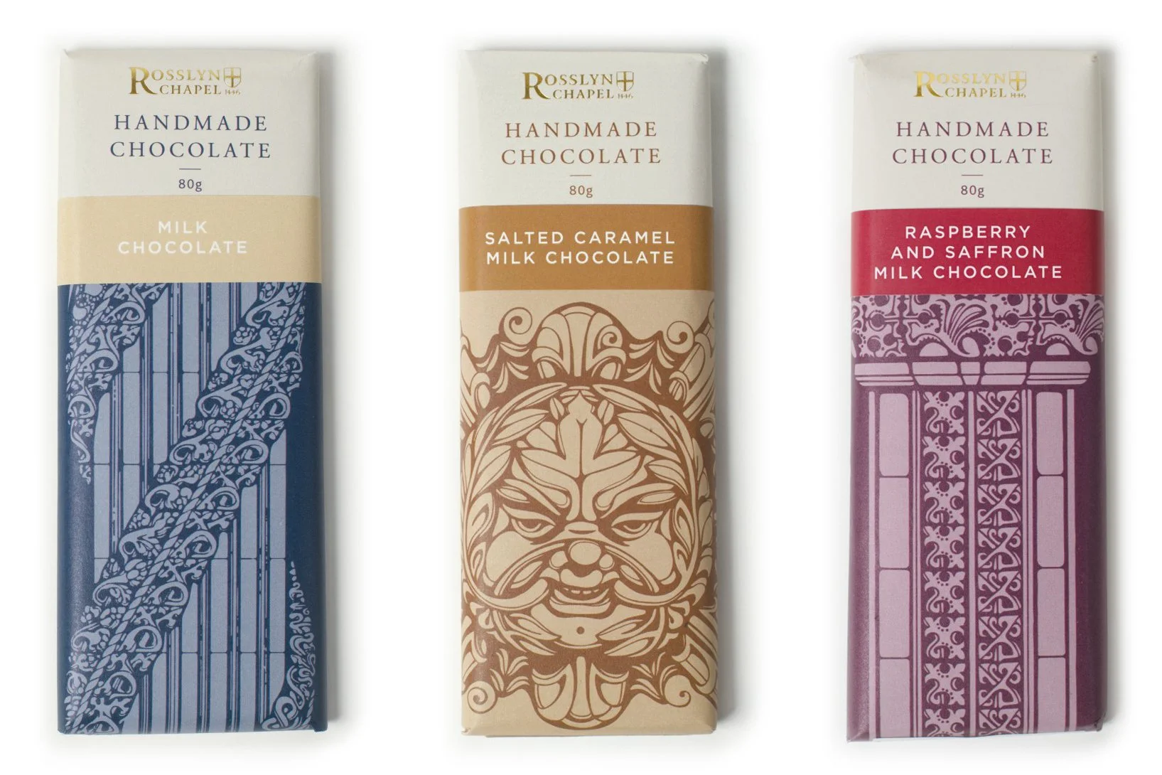 Ink illustrations applied to merchandise for Rosslyn Chapel.